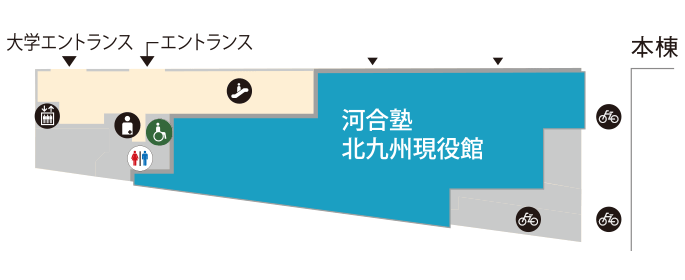 1F 西館・大学棟(館内からは2F連絡ブリッジをご利用下さい。)