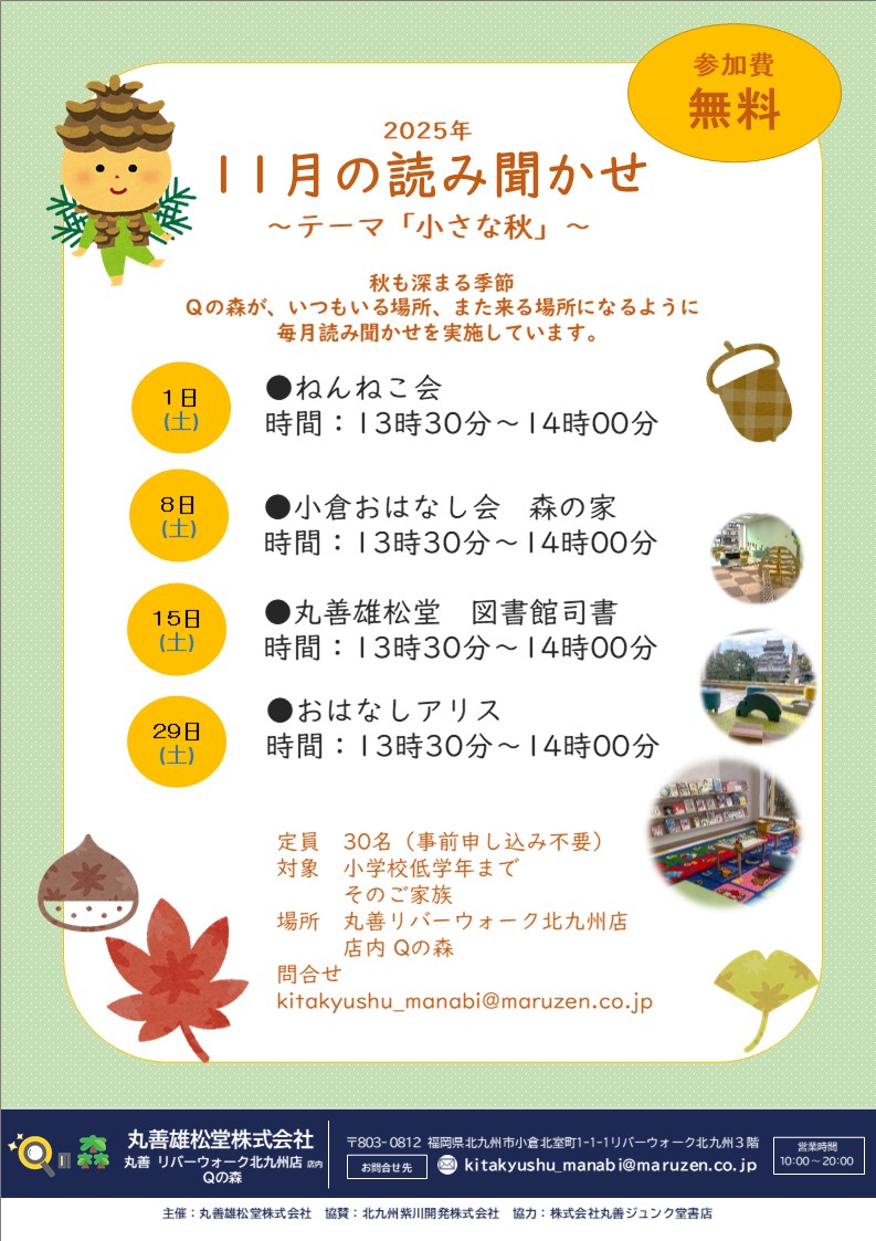 11/1(土)〜11/29(土) ※11/1,8,15,29実施 11月の読み聞かせ~テーマ「小さな秋」~