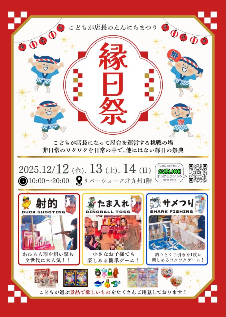 「日常の中に、ちょっとした非日常とこどもたちの挑戦の場をつくる」をテーマにした体験型縁日のお祭りです!射的・たま入れ・サメつりなど楽しいゲームをご用意。小さなお子様から大人の方まで、世代を超えて楽しめる空間をお届けします。ご家族の思い出づくりや、こどもたちの“やってみたい!”を応援するひとときを、ぜひ会場でお楽しみください。