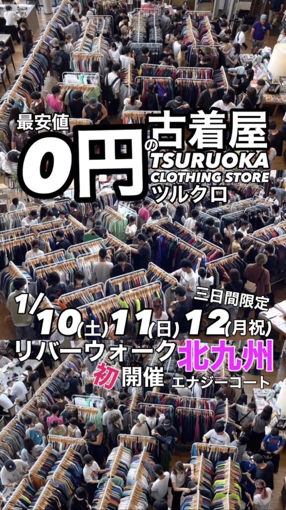 最安値0円の古着屋ツルオカクロージングストア北九州初開催。