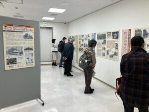 上記講演に合わせて、2025年11月17日(月)~24日(月・祝)、セミナールームにて企画展示を実施しました。本年6~7月に旧門司税関で実施された、企画展「昭和100年~映像と地図で振り返る 北九州市の戦前・戦中・戦後」(朝日新聞社主催、北九州市共催、ゼンリンミュージアム、門司港共創プロジェクトチーム共同事業体協力)にて展示された資料や、平和のまちミュージアム所蔵のパネル資料を展示し、100名以上の方が来場されました。